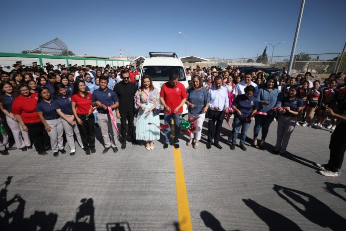 Ciudad Juárez, Chih .- La entrega se llevó a cabo en un evento donde estuvieron funcionarios de Gobierno, así como docentes, padres de familia y estudiantes del Colegio de Bachilleres 11, quienes se benefician directamente con esta obra, ya que mejora las condiciones de acceso al plantel.