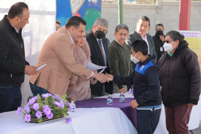 Ciudad Juárez, Chih .- Con el propósito de contribuir al acceso y permanencia estudiantil en las aulas, además de acercar los apoyos a las familias, el Presidente Municipal, Cruz Pérez Cuéllar, presidió hoy la entrega de referencias escolares a los niños y jóvenes que habitan en el suroriente de la ciudad, como parte del Programa Becas Escolares 2022.