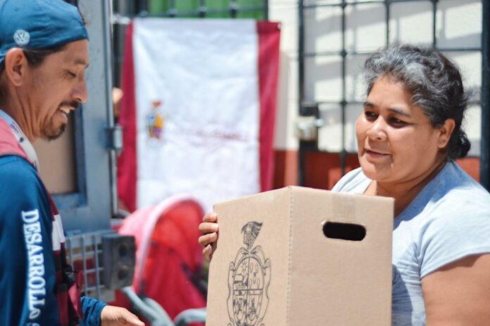 Con el apoyo de 40 trabajadores de la dependencia municipal se trabajó en la entrega de los comestibles, concluyendo de esta manera la décima segunda entrega de 8 mil despensas para beneficiar al mismo número de familias.