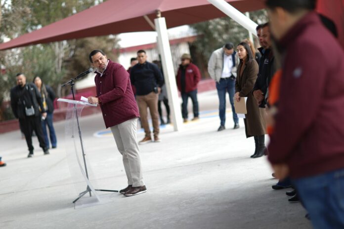 Como parte de la estrategia para mejorar la infraestructura de los planteles educativos, este día el Presidente Municipal, Cruz Pérez Cuéllar, hizo la entrega del domo que fue construido en la Escuela Primaria Carlos Villarreal, ubicada en la colonia Lindavista.