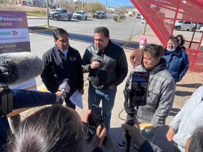 Ciudad Juárez, Chih .- Este sábado el Presidente Municipal, Cruz Pérez Cuéllar, llevó a cabo la entrega de los trabajos de recarpeteo que realizó la Dirección General de Desarrollo Urbano en la calle Arcos del Triunfo.