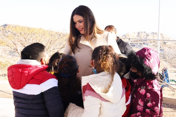 Ciudad Juárez, Chih .- “Me da un gusto enorme que las niñas y los niños tan bonitos de esta escuela se encuentren bien. Decirles que en el Gobierno Municipal ustedes son lo más importante. Queremos que tengan las mejores condiciones de vida y estamos trabajando mucho en ello. Les traemos con muchísimo cariño las chamarras”, expresó la presidenta de DIF.
