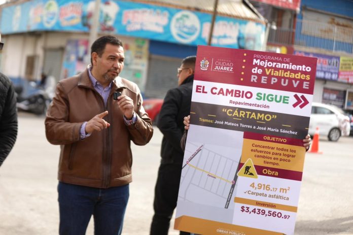 Este día el Presidente Municipal, Cruz Pérez Cuéllar, visitó el suroriente de Ciudad Juárez para llevar a cabo la entrega de las obras de repavimentación de la calle Cártamo, la cual fue rehabilitada a través del Programa de Mejoramiento de Vialidades.