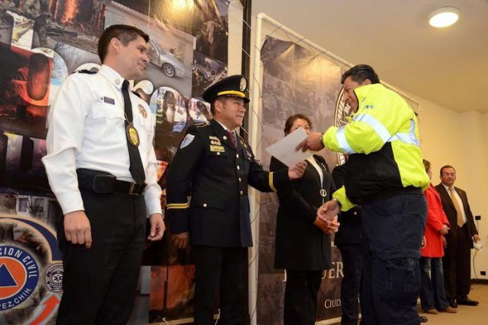 En la ceremonia de entrega de certificados estuvieron presentes el director de Prevención Social, Esteban Martínez; el comandante de Bomberos, Alfredo Salas Morales; el jefe del Departamento de Rescate, comandante Adrián Ramírez y María de los Ángeles Magaña, entrenadora de Homeland Security Cert y presidenta de la Asociación Nacional de Capellanes de México A.C.