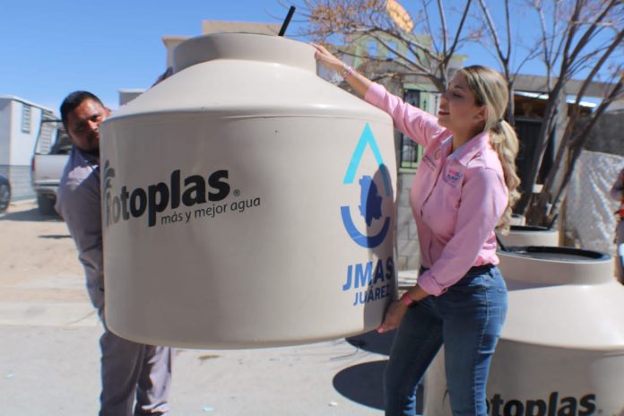 Ciudad Juárez (ADN/Adriana Saucedo) La Diputada Daniela Álvarez y la JMAS hicieron entrega de tinacos a familias del fraccionamiento Valle de Fundadores. Se ha atendido la solicitud de 25 familias del mencionado fraccionamiento.