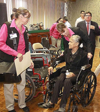 Al igual que ella, Soledad Favela Ramírez, Juan Carlos Cortes, Rodolfo Rentería, José Cortes y María Loreto Hernández, se hicieron acreedores de una silla de ruedas como parte del convenio de colaboración y coordinación para actividades de asistencia social, que hoy firmaron el Gobierno Municipal, el Sistema para el Desarrollo Integral de la Familia, DIF, y el Club Rotario de Ciudad Juárez.