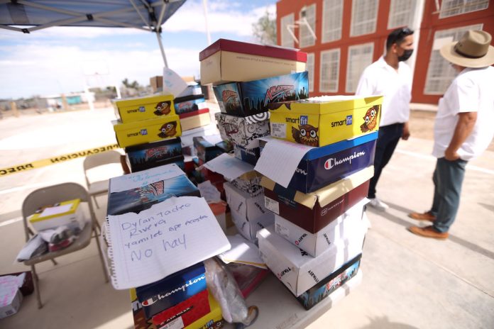 El evento se llevó a cabo en el Centro Comunitario José Refugio Sánchez, ubicado en el Kilómetro 27, y la donación consistió en 455 zapatos nuevos escolares y tenis para niñas, niños y adultos mayores de ese sector de Juarez.