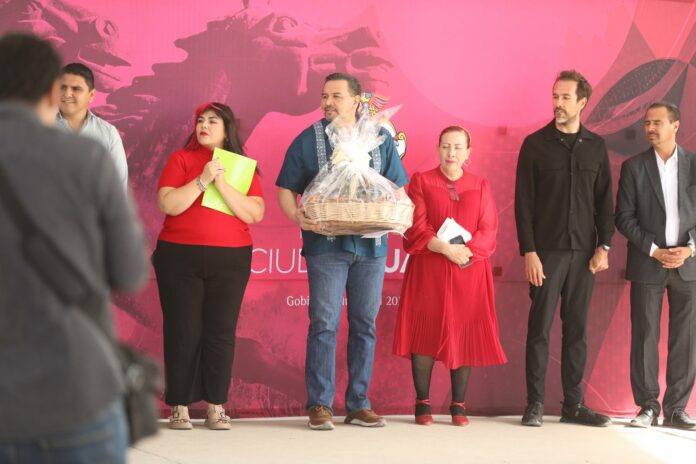 El evento finalizó con la entrega de un presente al presidente municipal por parte de la sociedad de alumnos, como muestra de agradecimiento por su apoyo y dedicación a la educación juarense.