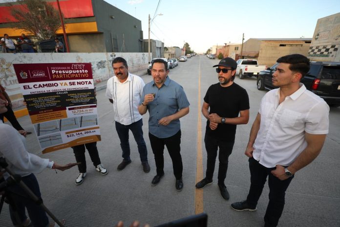 Ciudad Juárez, Chih .- El Presidente Municipal, Cruz Pérez Cuéllar, visitó la colonia La Cuesta para entregar cuatro calles que fueron pavimentadas a base de concreto hidráulico, mediante el programa de Presupuesto Participativo 2022.