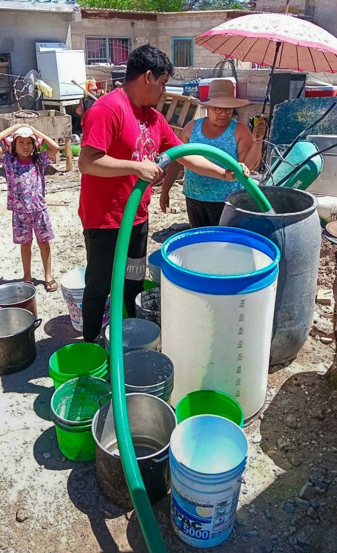 Ciudad Juárez, Chih .- A través de pipas de la J+ se distribuyeron más de 110 mil litros de agua potable en las calles 24 de Febrero, Aguamarina, Los Apóstoles, Malaquita, 12 de Julio, Cornalina y Turmalina, donde fueron atendidas más de 520 familias.