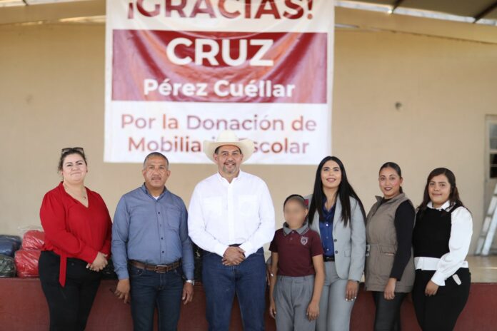 Este día, el Presidente Municipal, Cruz Pérez Cuéllar, entregró mobiliario en la escuela primaria 16 de Septiembre de Villa Coronado.