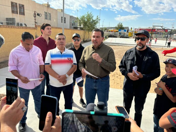 Ciudad Juárez, Chih .- “Aquí estamos entregando una obra más del Presupuesto Participativo, esto lo decimos en todos lados a donde vamos, los espacios públicos son de todos, no podemos restringírselos a nadie, eso es muy importante que esté muy claro, es de toda la ciudadanía y aprovechar para decirles que en noviembre empieza el registro para el Presupuesto Participativo 2025, del 4 al 29 de noviembre”, mencionó el alcalde.