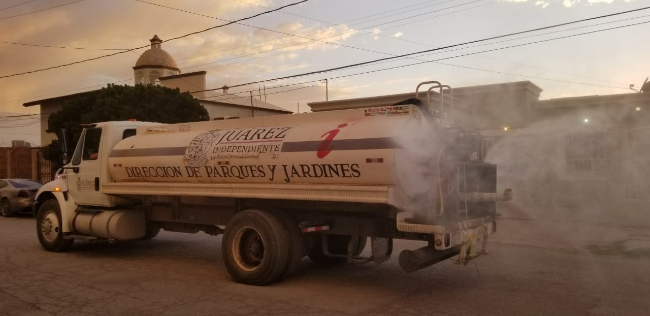 El titular de la dependencia, dijo que como parte del compromiso del Presidente Municipal Armando Cabada Alvídrez, para ejercer medidas preventivas ante el Covid-19, se han esparcido 635 mil litros de compuesto de agua e hipoclorito de sodio durante los recorridos de las dos pipas y el bidón equipados con aspersores.