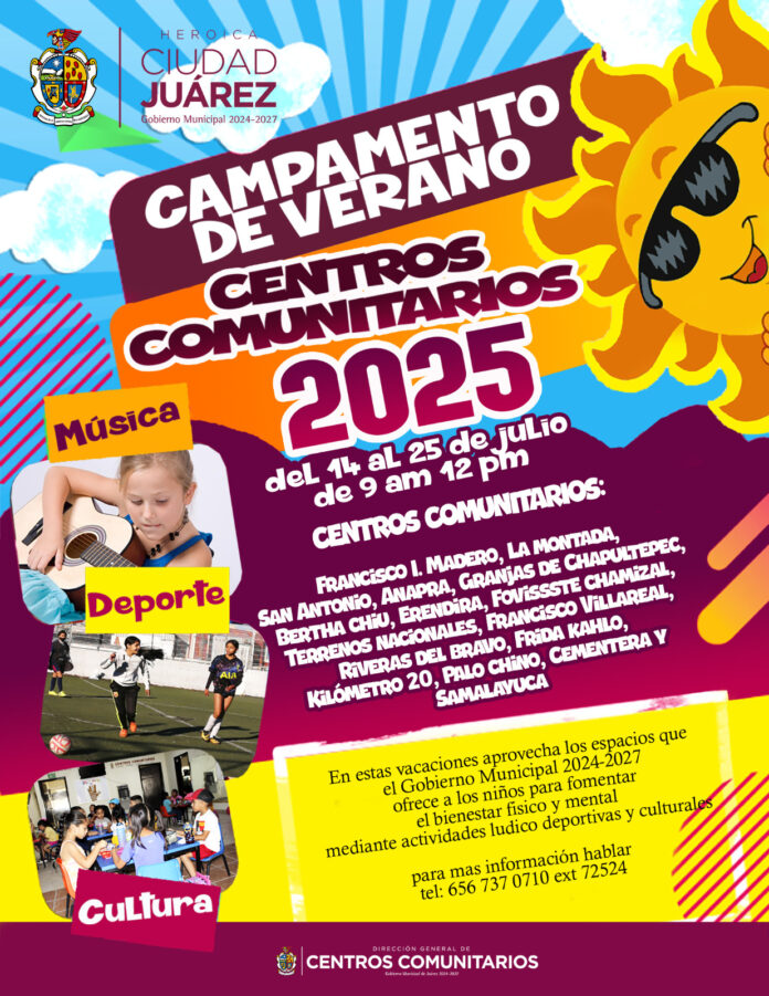 El Gobierno Municipal, a través de la Dirección General de Centros Comunitarios, invita a las familias a inscribir a sus hijos en el Campamento de Verano 2025.
