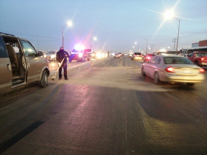 Ciudad Juárez, Chih .- Lo anterior con la finalidad de evitar accidentes provocados por el derrape de los neumáticos sobre el pavimento congelado, que pudiera provocar algún tipo de percance.