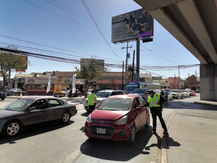 Ciudad Juárez, Chih .- Debido a que es una vialidad principal, los elementos se acercaron a ese punto para que el mensaje llegue a más personas y con ello se cree una mayor conciencia entre los ciudadanos al momento de abordar un vehículo.