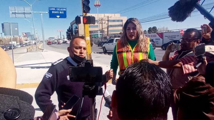 Ciudad Juárez, Chih . (ADN / Arturo Hernández) – Daniela Álvarez, Diputada Federal por el Partido Acción Nacional, acudió esta mañana al entronque de Pedro Rosales de León y Tecnológico, con la intención de reapertura el crucero, que se encuentra cerrado desde hace siete meses a consecuencia de los trabajos de la segunda ruta troncal del BRT.