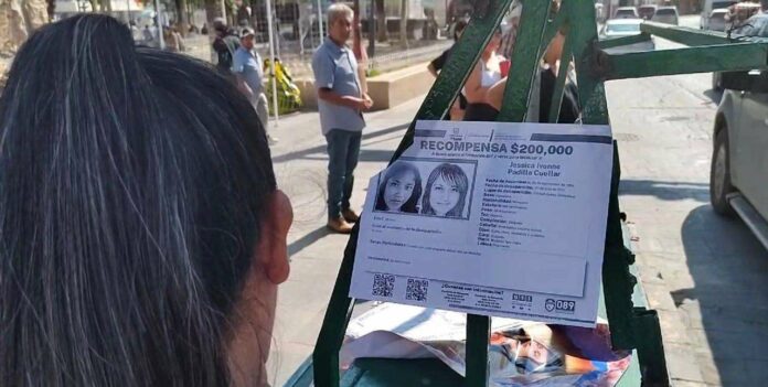 Anita Cuéllar madre de Jessica Ivonne Padilla Cuéllar, desaparecida el 7 de julio de 2011, pegó pesquisas en el centro histórico de la ciudad para conmemorar el cumpleaños 30 de su hija, además participaron en una Misa en la Misión de Guadalupe.