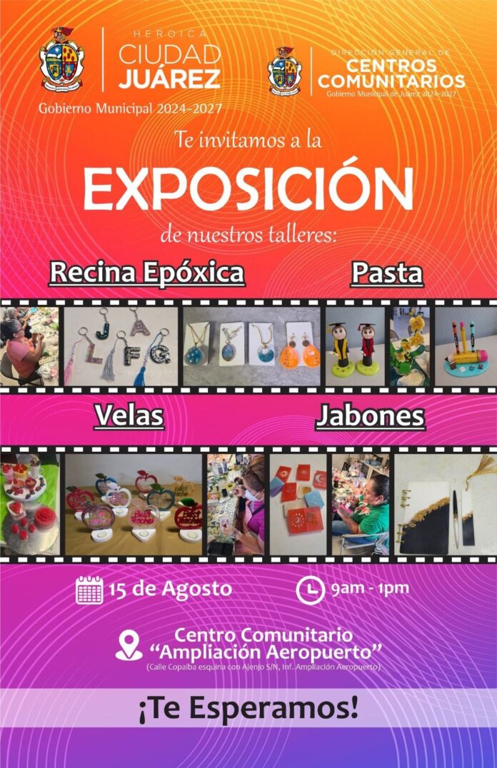 El próximo viernes 15, de 9:00 de la mañana a 1:00 de la tarde, en el Centro Comunitario Ampliación Aeropuerto se llevará a cabo una exposición de los trabajos elaborados por las personas que acuden a los talleres que se ofrecen en estos espacios.