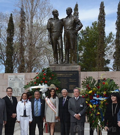 Finalmente autoridades presentes, entre quienes destacaron el Delegado de SAGARPA en el Estado de Sonora, Horacio Huerta Ceballos, la regidora María Griselda Reyes, Jorge Bejarano, presidente sección Juárez de la Asociación Nacional de Egresados, Abelardo Escobar Prieto, ex director y nieto de los fundadores y demás invitados, colocaron una ofrenda floral al pie del monumento de los Hermanos Escobar.