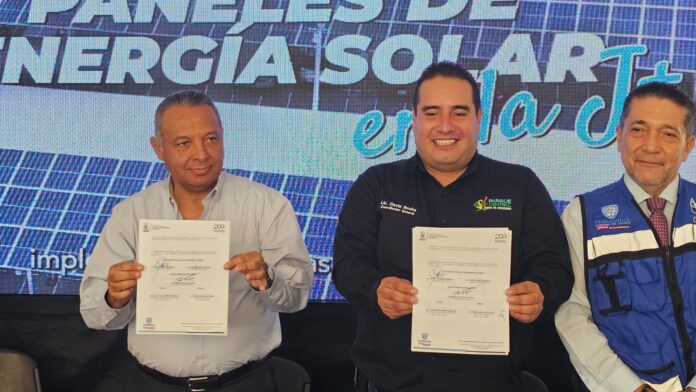 Un convenio para la instalación de paneles solares en el Parque Central firmaron hoy martes el director ejecutivo de la J+, Sergio Nevárez Rodríguez, y el administrador del Parque Central, David Rocha Lemus.