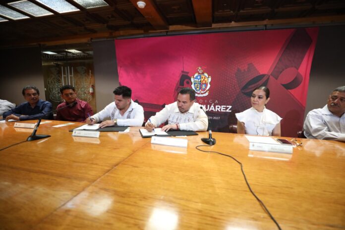 Ciudad Juárez, Chih .- El alcalde Cruz Pérez Cuéllar encabezó la reunión y agradeció a los presentes por acudir a la firma del convenio, que será de gran utilidad, ya que las acciones a realizar se han implementado por tres años y los testimonios en El Valle de Juárez son muy positivos.
