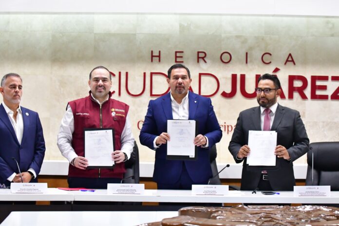 En la firma del convenio estuvieron el coordinador de directores, Enrique Licón Chávez; el director de Educación del Municipio, Guillermo Alvídrez; la directora de Desarrollo Económico, Tania Maldonado Garduño; la presidenta de la Cámara de la Industria de transformación, Isela Molina; el delegado de Canacar en Juárez, Alejandro González; el director de Canacar Zona Norte, Oscar Flores y el subdirector de enlace en Coahuila, Arturo Sotomayor.