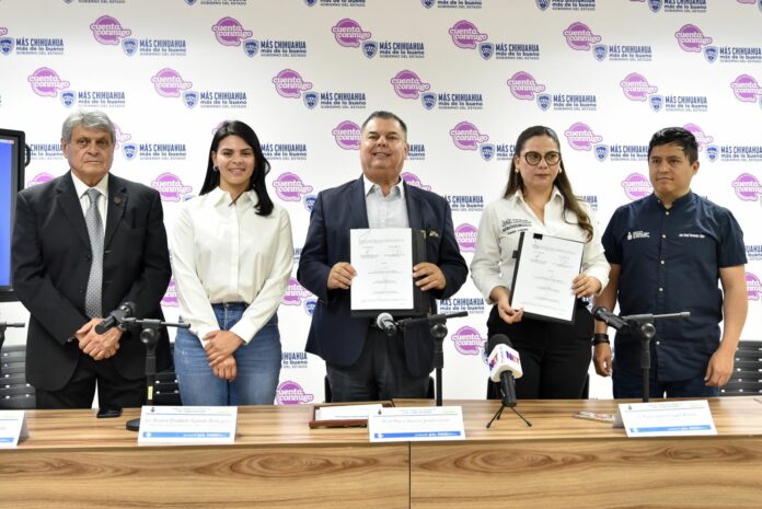 Ciudad Juárez, Chih .- La firma del acuerdo se llevó a cabo en las oficinas administrativas del Gobierno del Estado en Ciudad Juárez, con la participación del director general del Ichea, Mario Eberto Javalera Lino, y la coordinadora regional de Proyectos Sociales de Fundación Hogares, Paola Ivonne López Alonso.