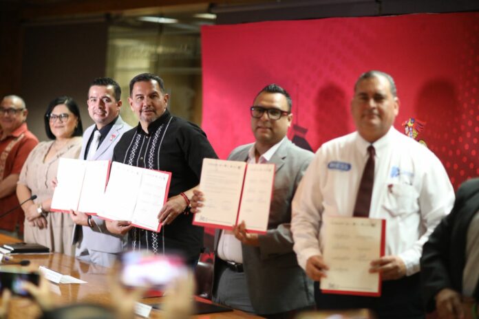 El Presidente Municipal, Cruz Pérez Cuéllar, encabezó la firma protocolaria del Convenio General de Vinculación en Materia de Colaboración Académica, Científica, Tecnológica, Cultural y Deportiva con el Tecnológico Nacional de México campus Juárez (ITCJ).
