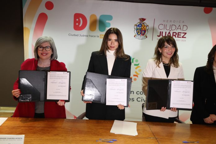 El Sistema para el Desarrollo Integral de la Familia del Municipio de Juárez (DIF) firmó un convenio de colaboración con el Centro de Fortalecimiento de las Organizaciones de la Sociedad Civil (CFOSC), con el fin de apoyar a las agrupaciones que trabajan a favor de las niñas, niños y adolescentes de esta frontera.