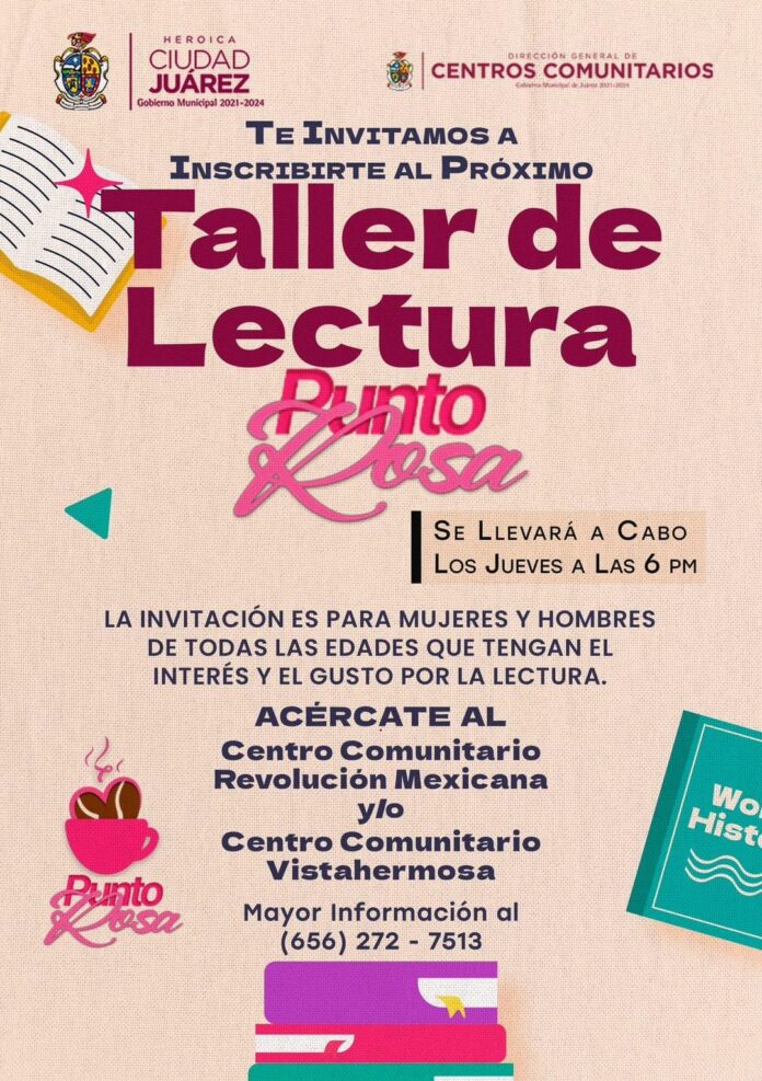 La Dirección General de Centros Comunitarios invita a la comunidad en general al Taller de Lectura que se realiza como parte de las acciones de Punto Rosa.