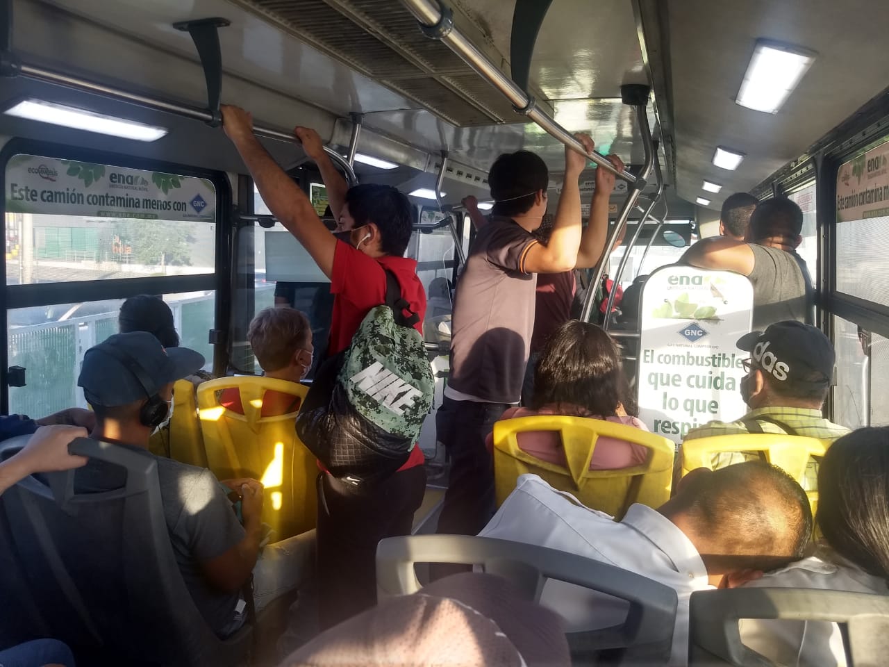 Manifestó que además de asegurarse que no se exceda el límite de personas en el colectivo, se verifica también que se estén cumpliendo todas las medidas de seguridad sanitaria, guardando la distancia marcada entre las personas, uso correcto de cubrebocas y la aplicación del gel sanitizante.