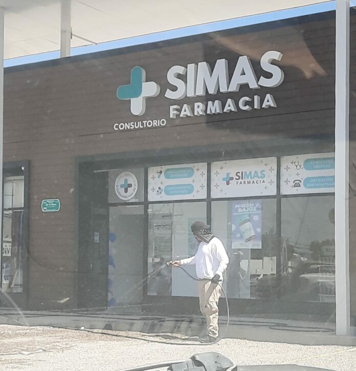 Ciudad Juárez, Chih .- Fue en el cruce de Av. Adolfo López Mateos e Insurgentes donde se estaba cometiendo el desperdicio de agua, regando el estacionamiento de la farmacia.
