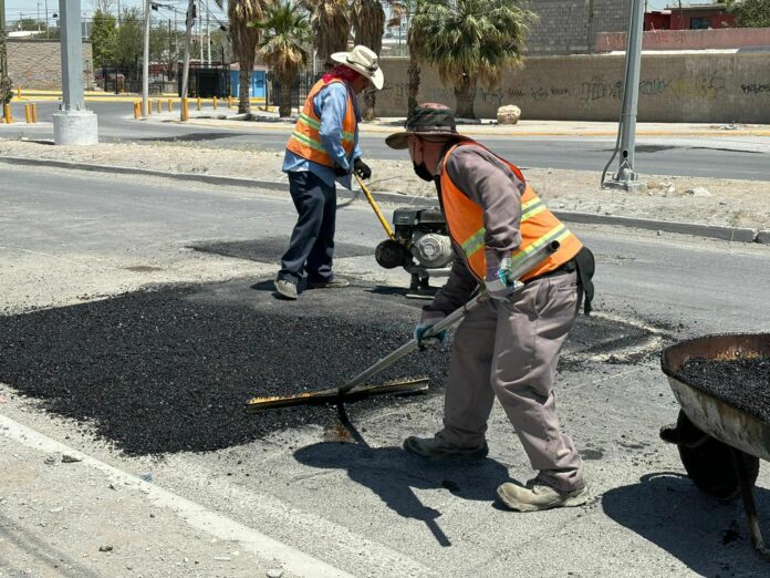 Ciudad Juárez, Chih .- Daniel González García, director de la dependencia, comentó que se trabaja de manera intensa en el mantenimiento de las arterias, resaltando que durante la semana pasada fueron atendidas con bacheo calles como Loma Azul, Batalla de Juárez, Batalla de Zacatecas, Canal del Corintio, Pinos Altos y Neptuno, por mencionar algunas.