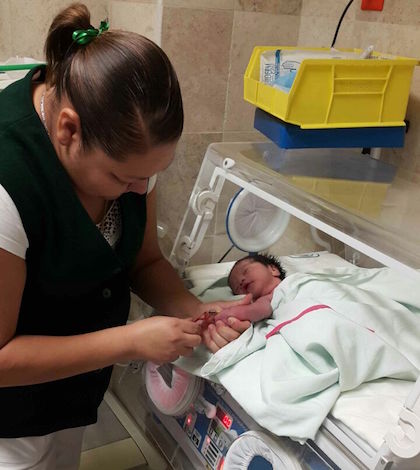 La enfermera pediatra Susana Hernández, fue quien tuvo la oportunidad de recibirla, ya con el cordón cortado por los paramédicos durante los procedimientos de traslado.