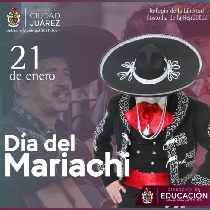 Ciudad Juárez, Chih .- Cada 21 de enero se celebra el Día Internacional del Mariachi, por lo que el Presidente Municipal, Cruz Pérez Cuéllar y la directora de Educación, Martha Aracely González Holguín, felicitaron al Mariachi Oro Juvenil de la Ciudad, el cual forma parte de las agrupaciones musicales impulsadas por el Gobierno Municipal.