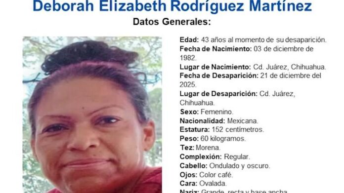 Ciudad Juárez, Chih. (ADN/Arturo Hernández) – La Fiscalía Especializada de la Mujer identificó a la mujer localizada sin vida el pasado 7 de enero en una fosa clandestina, ubicada en un domicilio de la colonia Praderas del Sol, como Déborah Elizabeth R. M., de 43 años de edad.