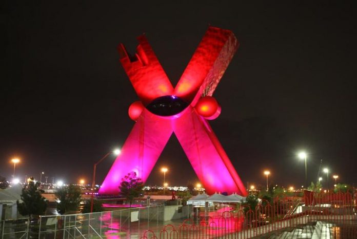 Ciudad Juárez, Chih. – El Gobierno Municipal Independiente se sumó a la campaña internacional contra el cáncer de mama e iluminó la escultura de la “X”, en la Plaza de la Mexicanidad, de color rosa anoche, esto como una forma de concientizar a la ciudadanía sobre la detección y atención oportuna de este padecimiento.