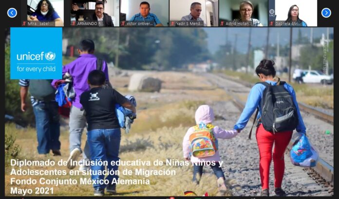 Esta capacitación forma parte del proyecto “Inclusión a la educación básica de niñas, niños y adolescentes en contextos migratorios en México”, que coordina el Fondo de las Naciones Unidas para la Infancia (Unicef) y se enmarca en la propuesta aprobada por el Fondo Conjunto México Alemania (FMCA) en donde participan la Agencia de Cooperación Alemana (GIZ) y la Agencia Mexicana de Cooperación Internacional (Amexid).