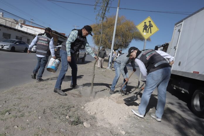 El director de Parques y Jardines, Daniel Zamarrón Saldaña, informó que los trabajos se llevaron a cabo en coordinación con el diputado federal Alejandro Pérez Cuéllar, con la participación de cuadrillas encargadas de preparar el suelo del camellón para asegurar mejores condiciones de plantación.
