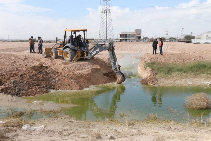 Ciudad Juárez, Chih .- El dique se encuentra a un costado de la calle Eduardo Barbachano y De los Palacios, donde se encuentra ubicado el vaso principal, el cual tiene una capacidad de 6 mil metros cúbicos.