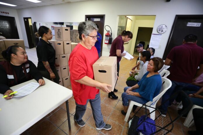 Ciudad Juárez, Chih .- Puntuales, las y los beneficiados acudieron desde las 8:00 de la mañana al espacio más cercano a su domicilio, el cual, con antelación es destinado por la dependencia, señaló Vallejo Quintana.