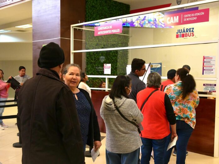 Ciudad Juárez, Chih .- Este lunes inició la entrega al público de las Tarjetas Juárez Bus en el Centro de Atención de Movilidad (CAM), ubicado en la Unidad Administrativa de Gobierno del Estado “José María Morelos y Pavón”, conocida como Pueblito Mexicano, que registró la presencia de cientos de usuarios del Sistema de Transporte Público.