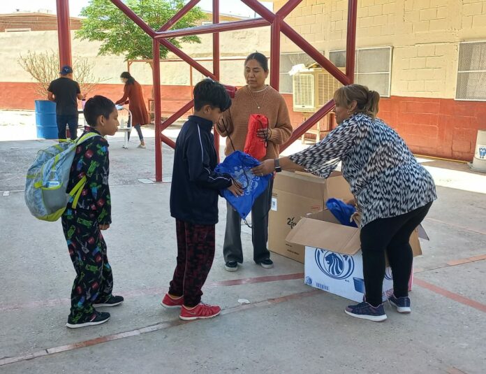 Adicionalmente, la J+ entregó 155 mochilas con vaso y bolo para cada uno de los estudiantes. De manera simbólica, fueron recibidas por dos alumnos de primer grado: Erick Norberto Gardea Ochoa y Gisele Esquivel Esquivel.