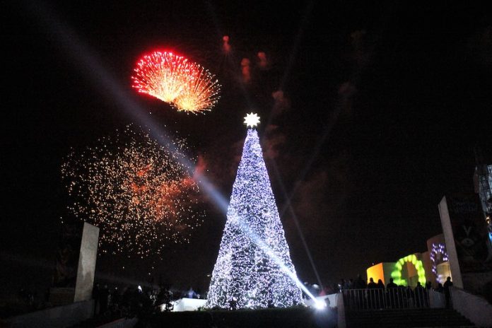 Inician fiestas decembrinas con encendido de árbol navideño