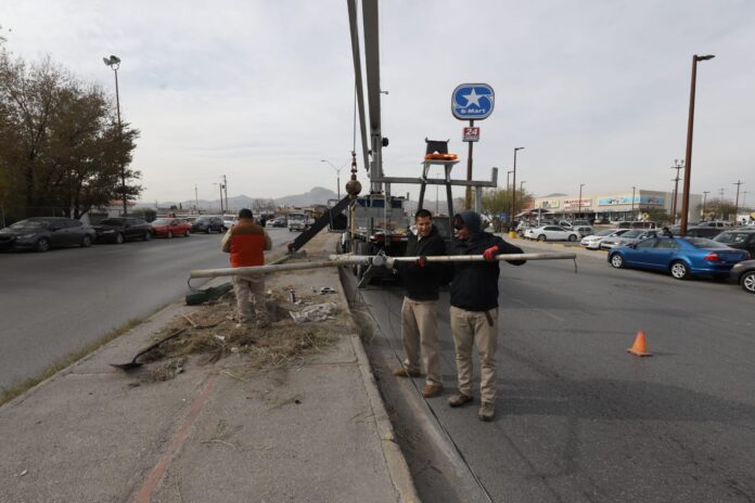 Ciudad Juárez (ADN/Staff) – Con el objetivo de mejorar la seguridad vial y fortalecer la infraestructura urbana, la Dirección de Alumbrado Público realizó la instalación de cinco arbotantes en la Perimetral Carlos Amaya, en el tramo que va del eje vial Juan Gabriel a la calle Mayas.