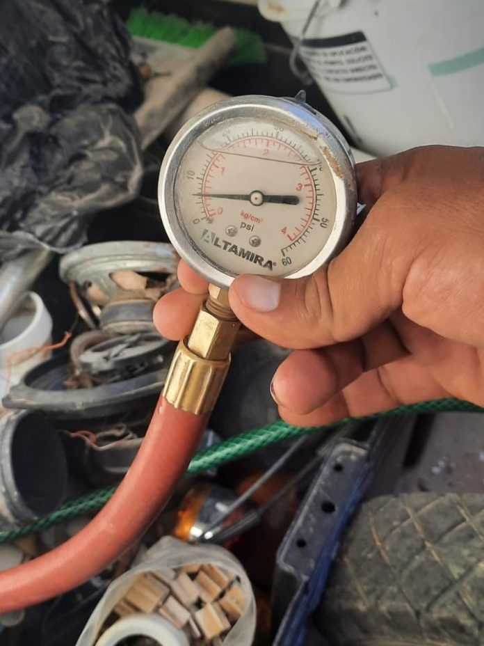 Tras colocar la bomba de agua, se verificó la presión existente, misma que fue de 7 libras, cantidad suficiente para poder hacer uso del agua y que la misma llegue a los aparatos de aire evaporativo.