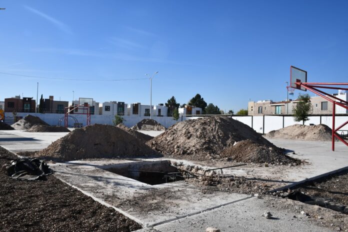 Ciudad Juárez (ADN/Staff) – La Dirección General de Obras Públicas inició los trabajos para la instalación de un sistema de riego y la construcción de un domo en el parque Kanilaka Nawa, ubicado en el cruce de las calles Paseos del Real y Hacienda de San Miguel, en la colonia Reserva del Valle.