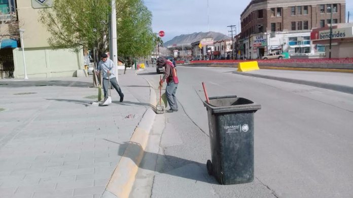 Ciudad Juárez, Chih. – Tras el inicio del retiro de comerciantes informales de la zona centro, el Municipio a través de cuadrillas de la Dirección General de Servicios Públicos intensificó las labores de limpieza en el sector.