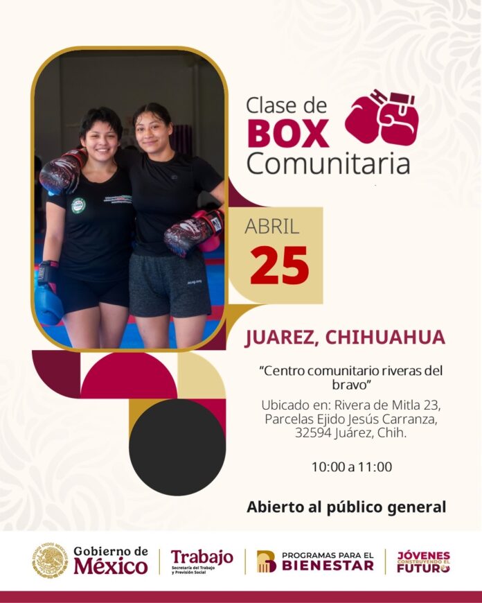 Ciudad Juárez, Chih. (ADN/Staff) – La Dirección General de Centros Comunitarios invitó a la población a participar en la “Clase de Box Comunitaria”, que se realizará este sábado 25 de abril en el Centro Comunitario Riberas del Bravo.